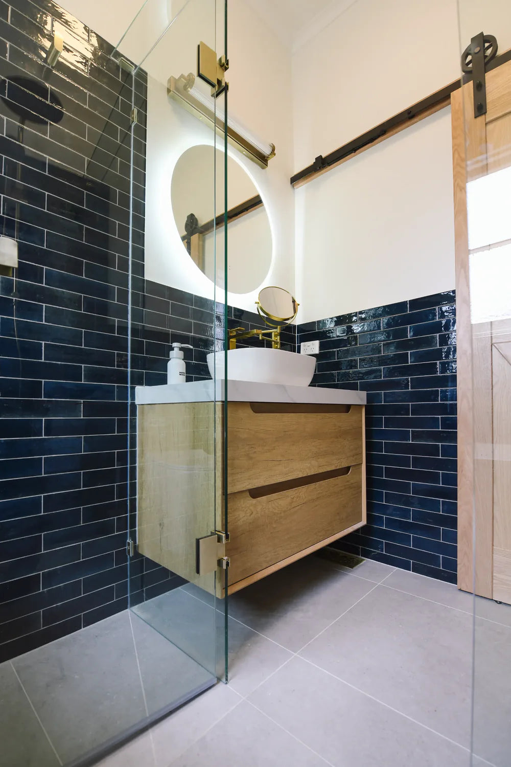 The general height to hang a mirror and shaving cabinets should be around 2m from the floor so that they’re tall enough for someone to stand under.