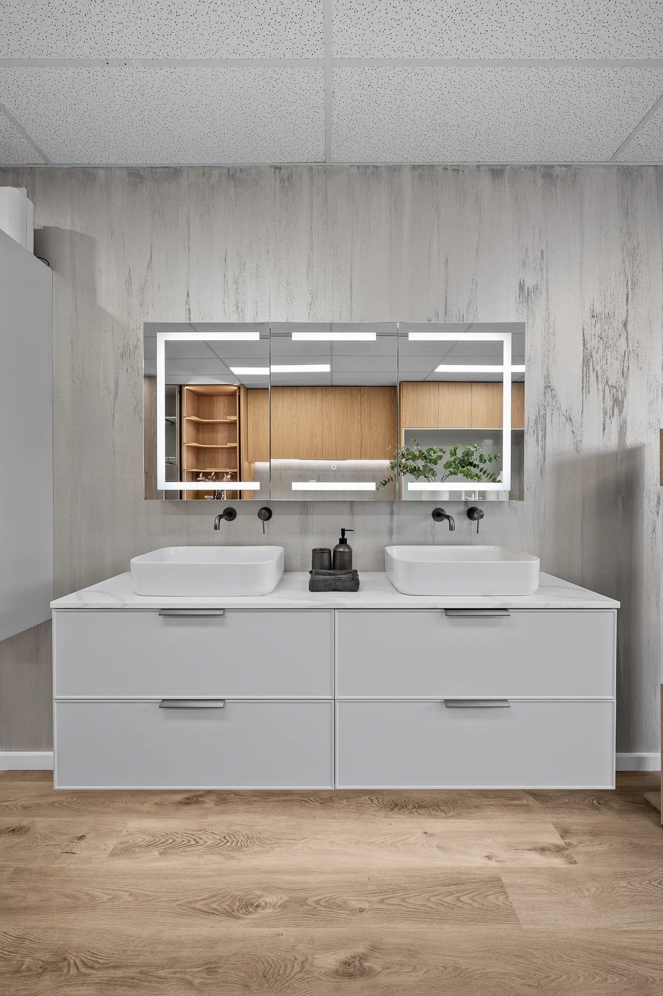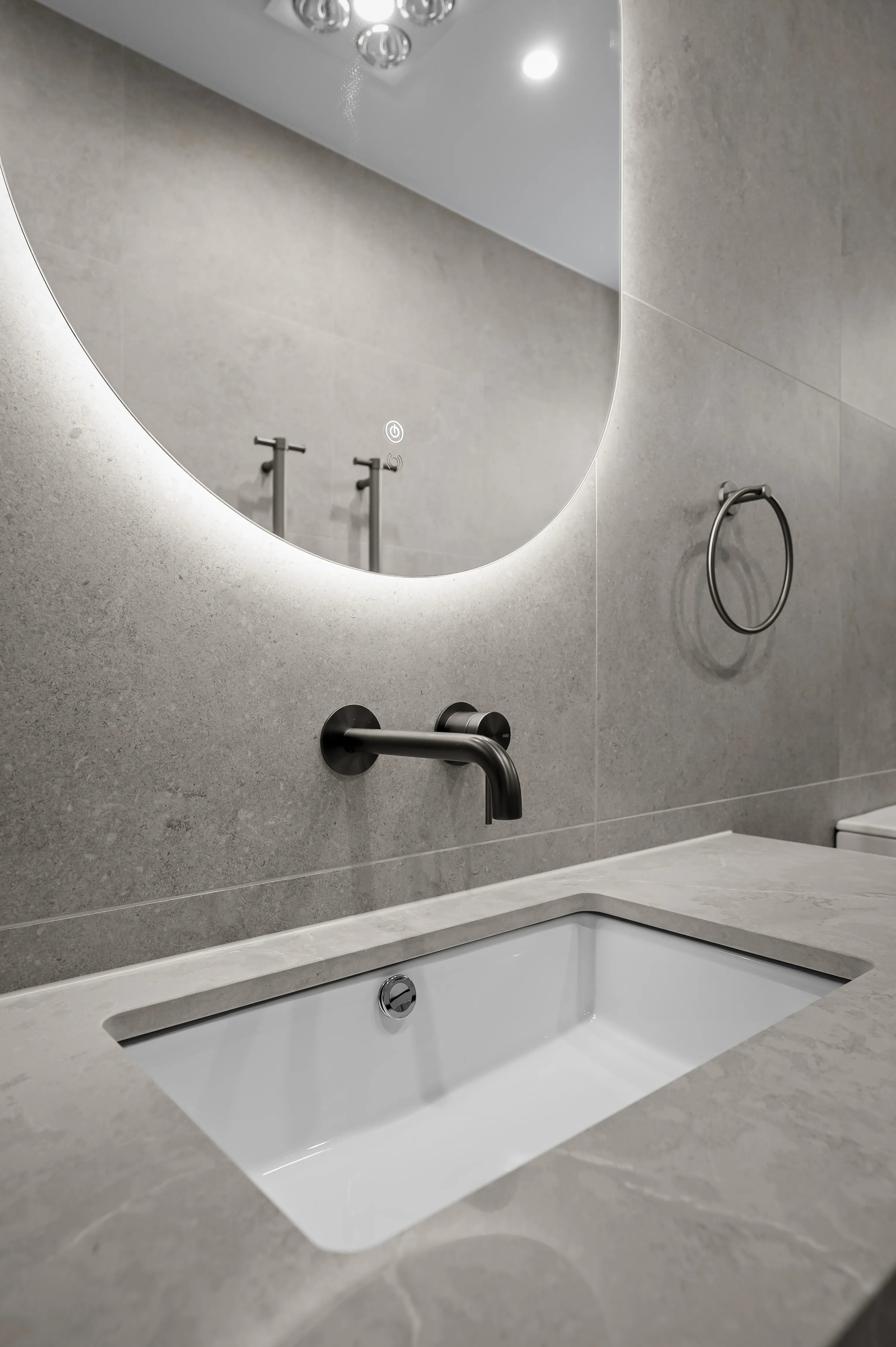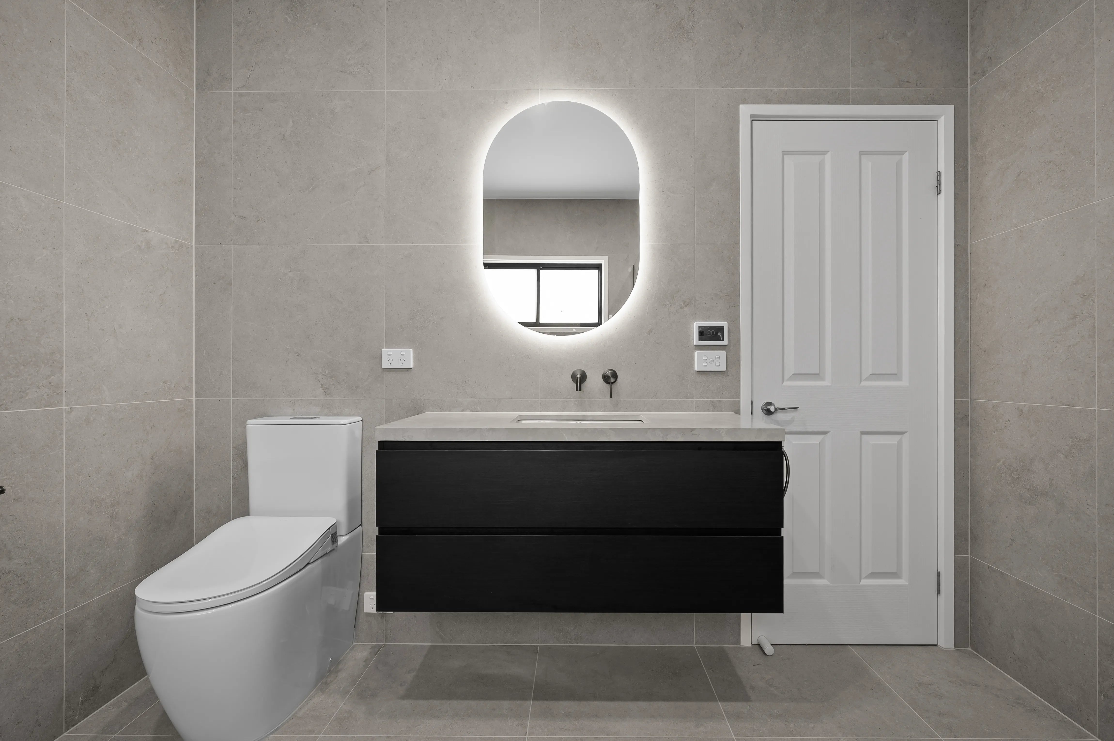 We develop your layout, storage strategy and material palette together, selecting finishes across matt, stone-look, timber-look and smooth flat panel options that create the specific quality of calm your minimal modern bathroom should express.